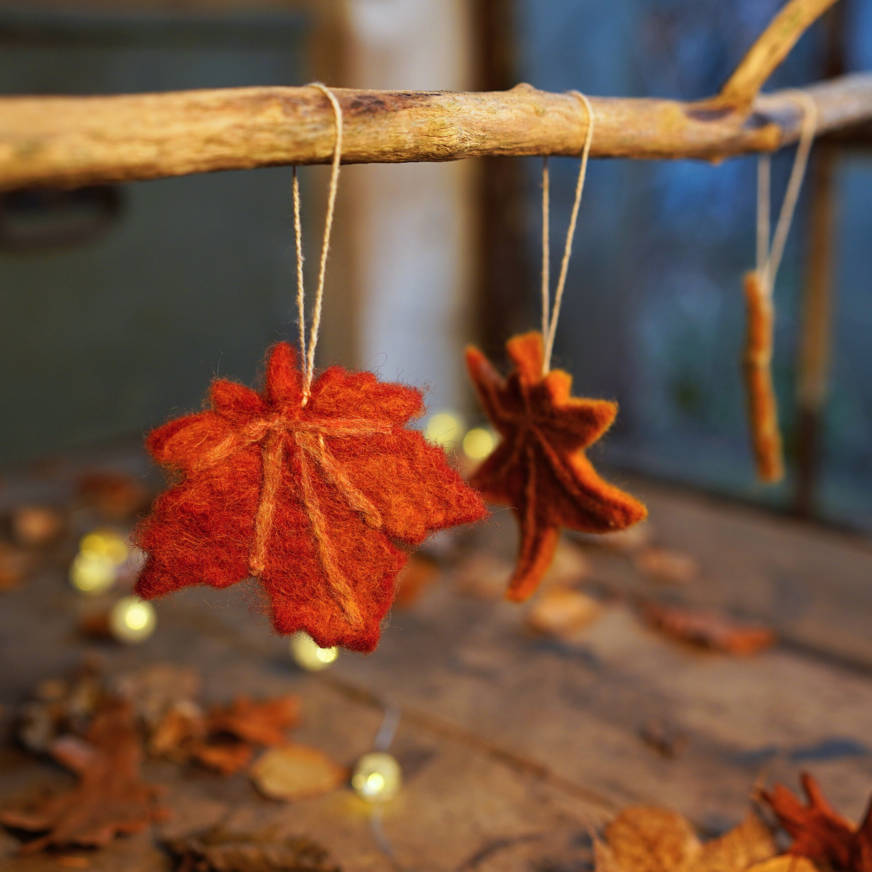 Unsere handgefilzten Türkränze für den Herbst sind ein echter Hingucker und verleihen deinem Eingangsbereich einen warmen, einladenden Charme. Du kannst sie zusätzlich mit unseren herbstlichen Anhängern, wie z.B. Filzblättern, dekorieren, um einen zusätzlichen Farbtupfer zu setzen. Die Anhänger von Gry & Sif eignen sich auch hervorragend, um DIY-Türkränze individuell zu schmücken und aufzuwerten. So kannst du mit bunten Filzäpfeln, -birnen und Kürbissen oder Filzvögeln deine Herbstdeko ganz nach deinem Geschmack gestalten.