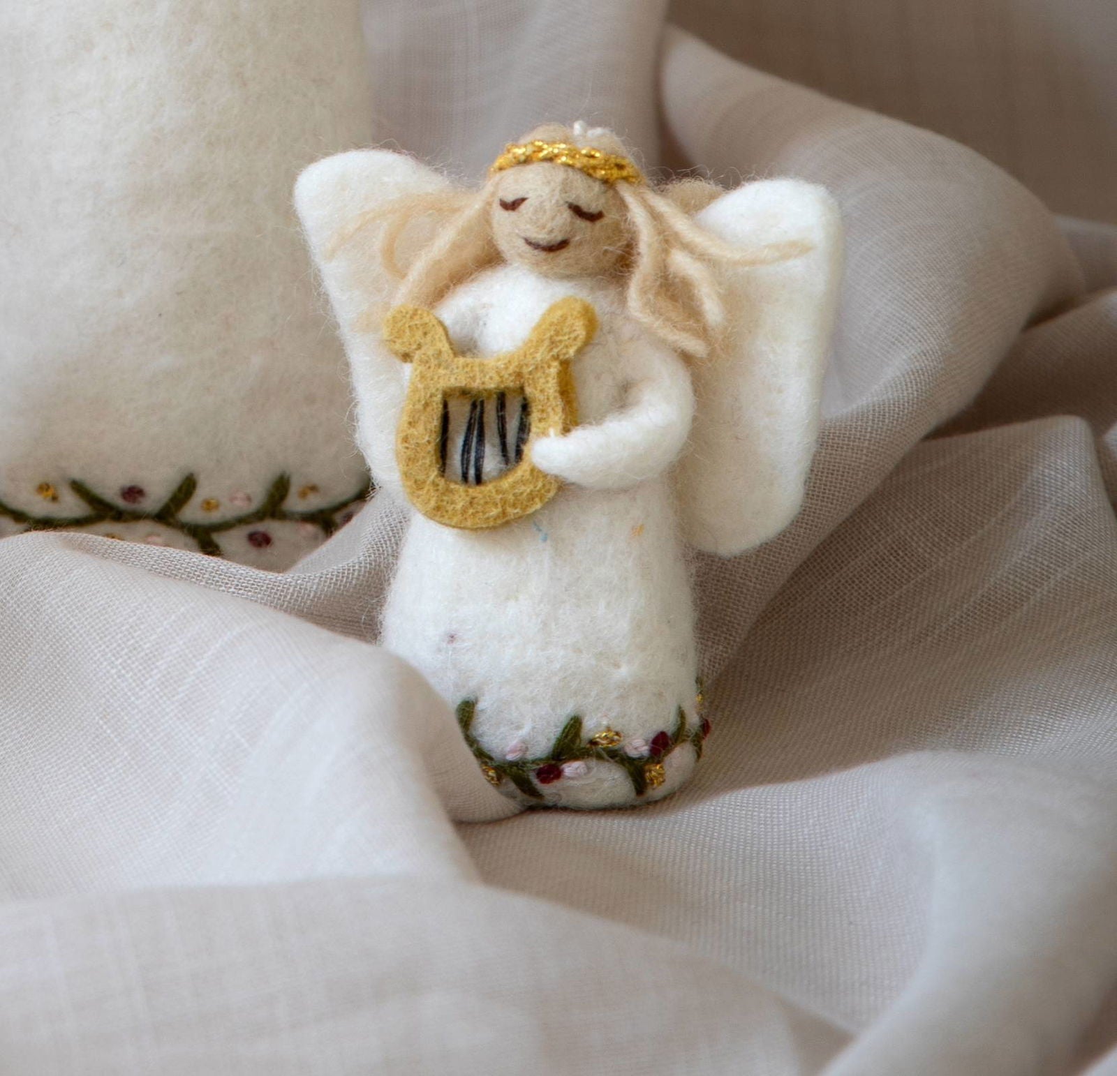 Ein himmlisches Trio für die schönste Zeit des Jahres: Dieses handgefertigte Set aus drei kleinen Filzengeln bringt zauberhafte Weihnachtsstimmung direkt in dein Zuhause. Mit zarten Instrumenten in der Hand und liebevollen Details sind sie mehr als Dekoration – sie sind kleine Botschafter des Weihnachtszaubers.