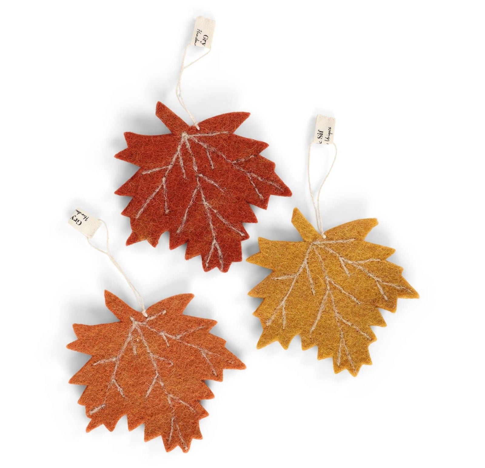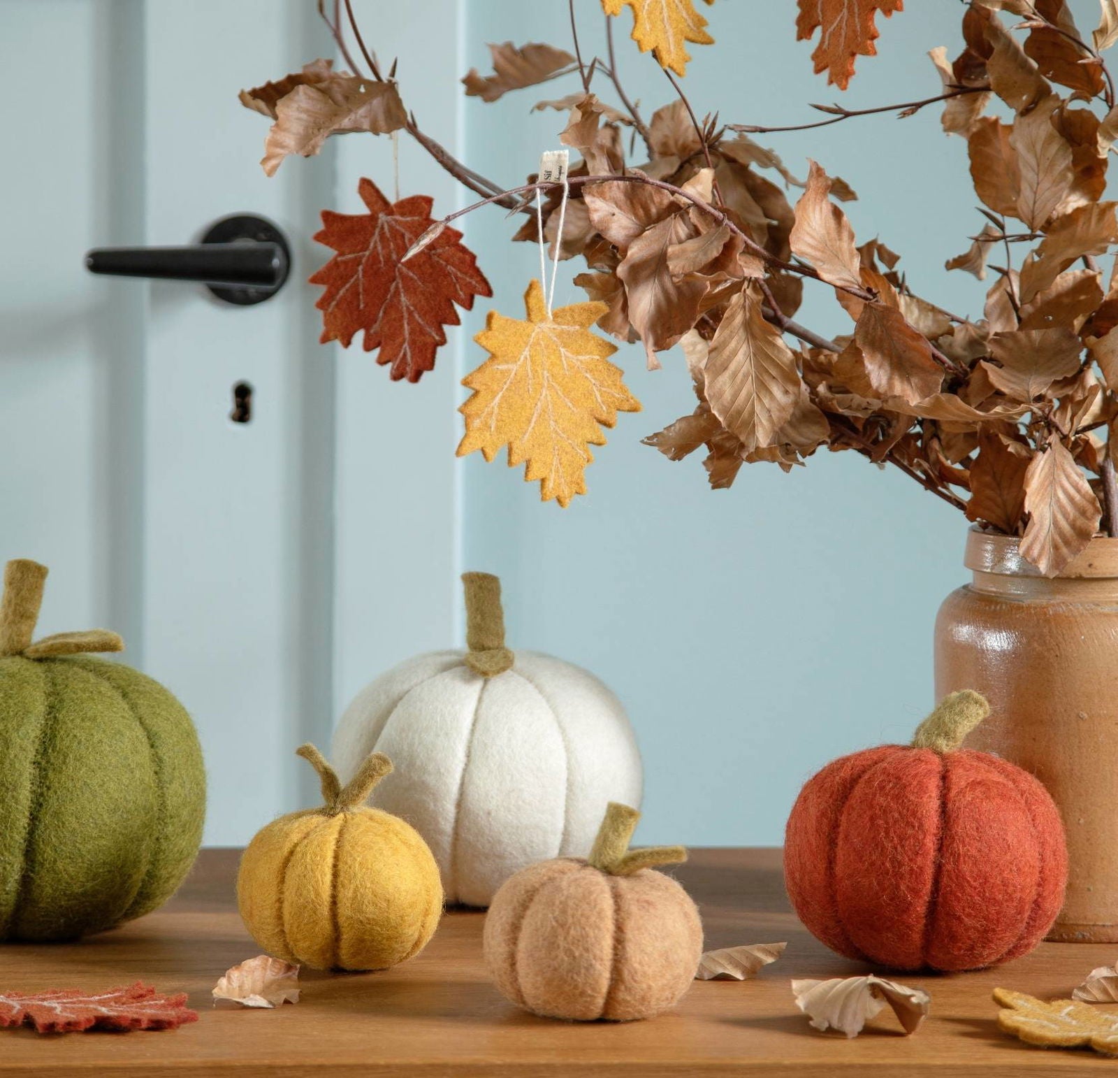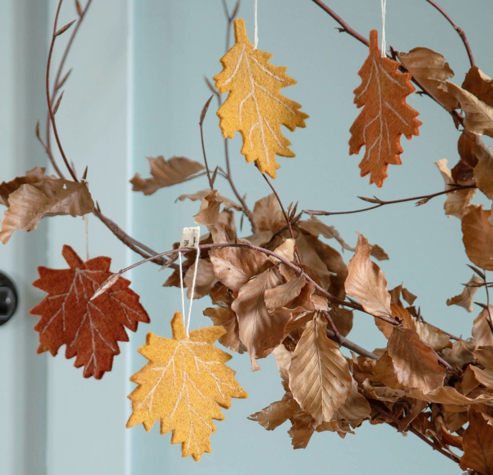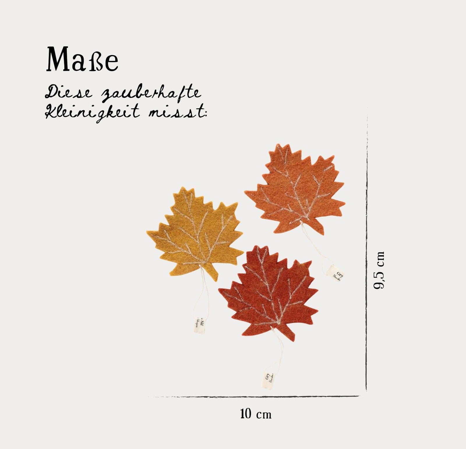 Diese handgefertigten Filzanhänger Ahornblätter im 3er-Set bringen den Zauber des Herbstes in dein Zuhause.