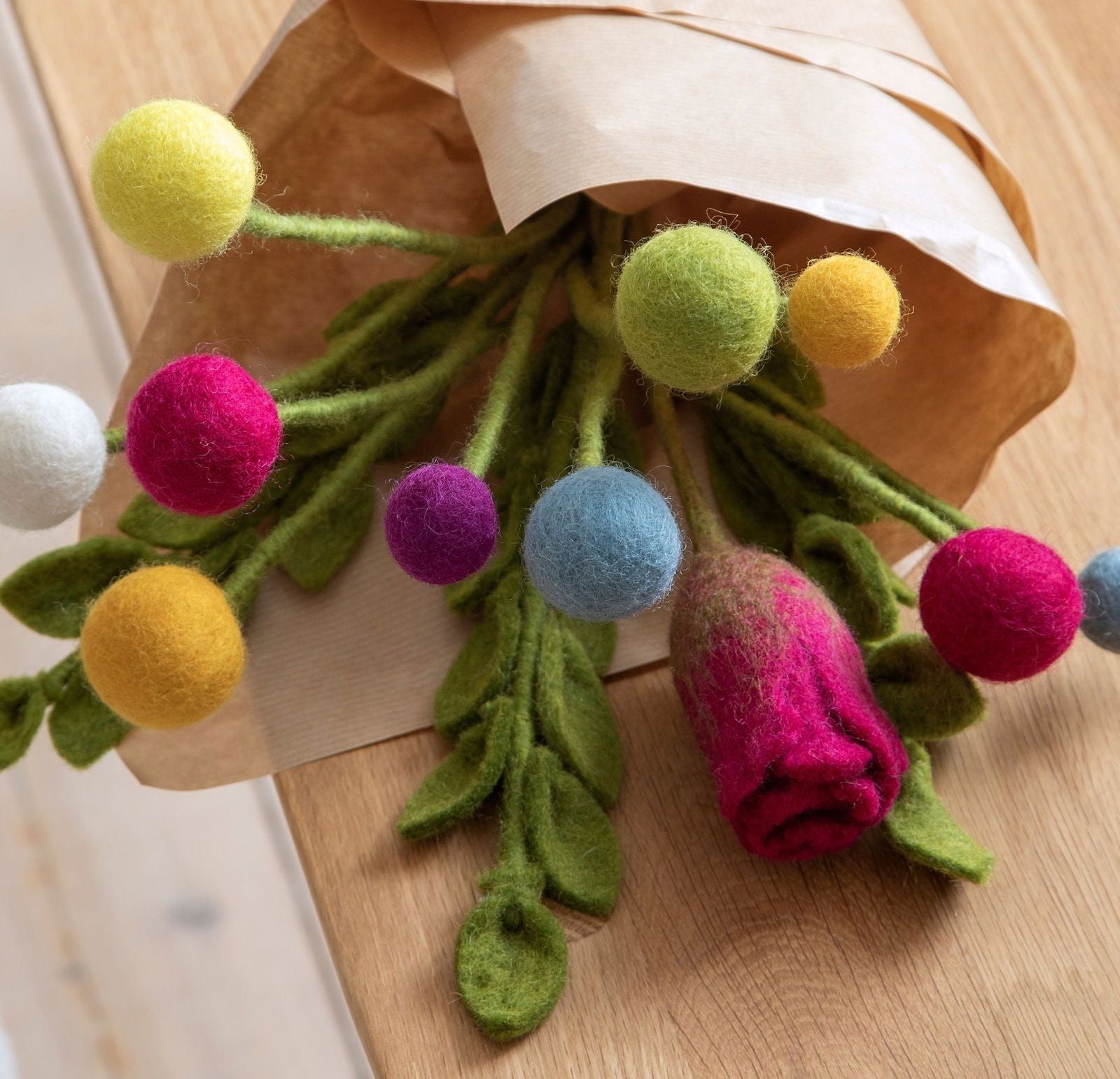 Die Blumensträuße aus Filz von Gry & Sif sind eine wunderschöne und langlebige Alternative zu echten Blumen. Diese handgefertigten Sträuße bestehen aus hochwertiger Schurwolle und bringen Farbe und Freude in jeden Raum. Ideal als Geschenk oder als dauerhafte Dekoration, sind sie perfekt für Allergiker und benötigen weder Wasser noch Licht.