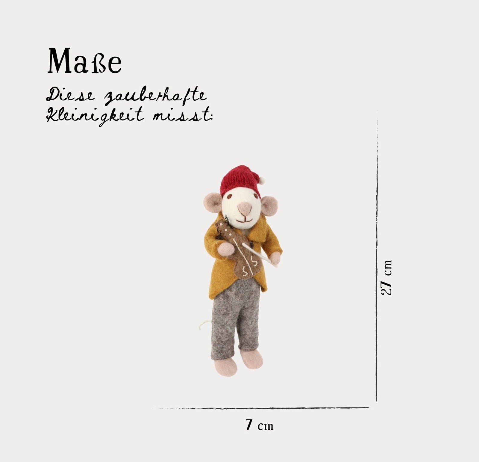 Eine Maus mit Musik im Herzen! Diese große graue Filzmaus mit ihrer kleinen Geige bringt eine ganz besondere Weihnachtsstimmung mit – als wäre sie Teil von Santas Orchester. Eine charmante Weihnachtsfigur mit gelbem Mantel, die jedem Zuhause einen festlichen Zauber verleiht.