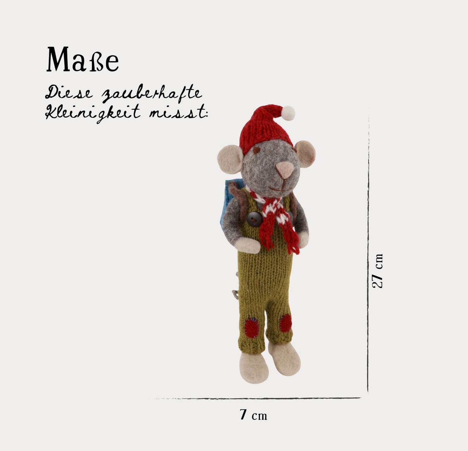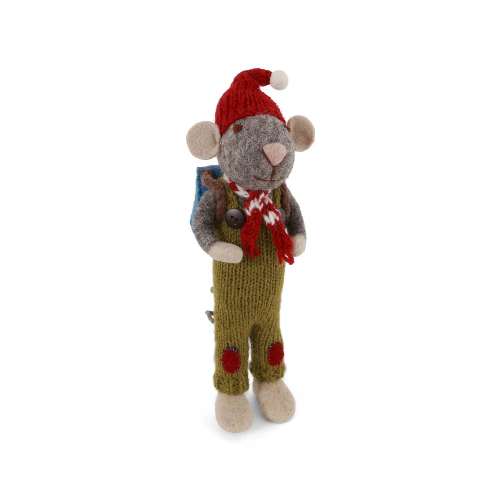 Filzfigur Maus grau groß mit grüner Hose & Rucksack
