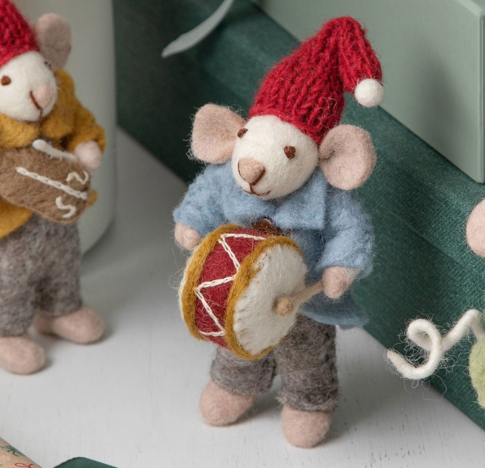 Diese kleine weiße Trommelmaus bringt nicht nur Musik in die Weihnachtszeit, sondern auch eine große Portion Herz. Handgefilzt mit liebevollen Details, ist sie bereit, das Weihnachtsorchester anzuführen – oder als Einzelstar auf dem Baum, im Adventskranz oder als süße Geschenkidee zu glänzen.