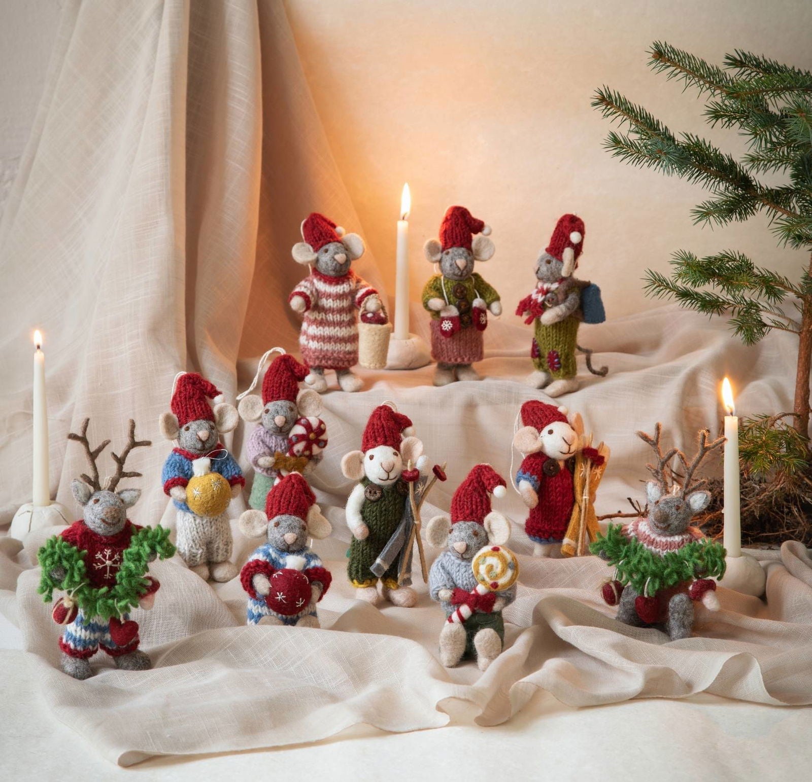 Verbreite Weihnachtsfreude mit unseren filzigen Mäuse-Dekorationen!