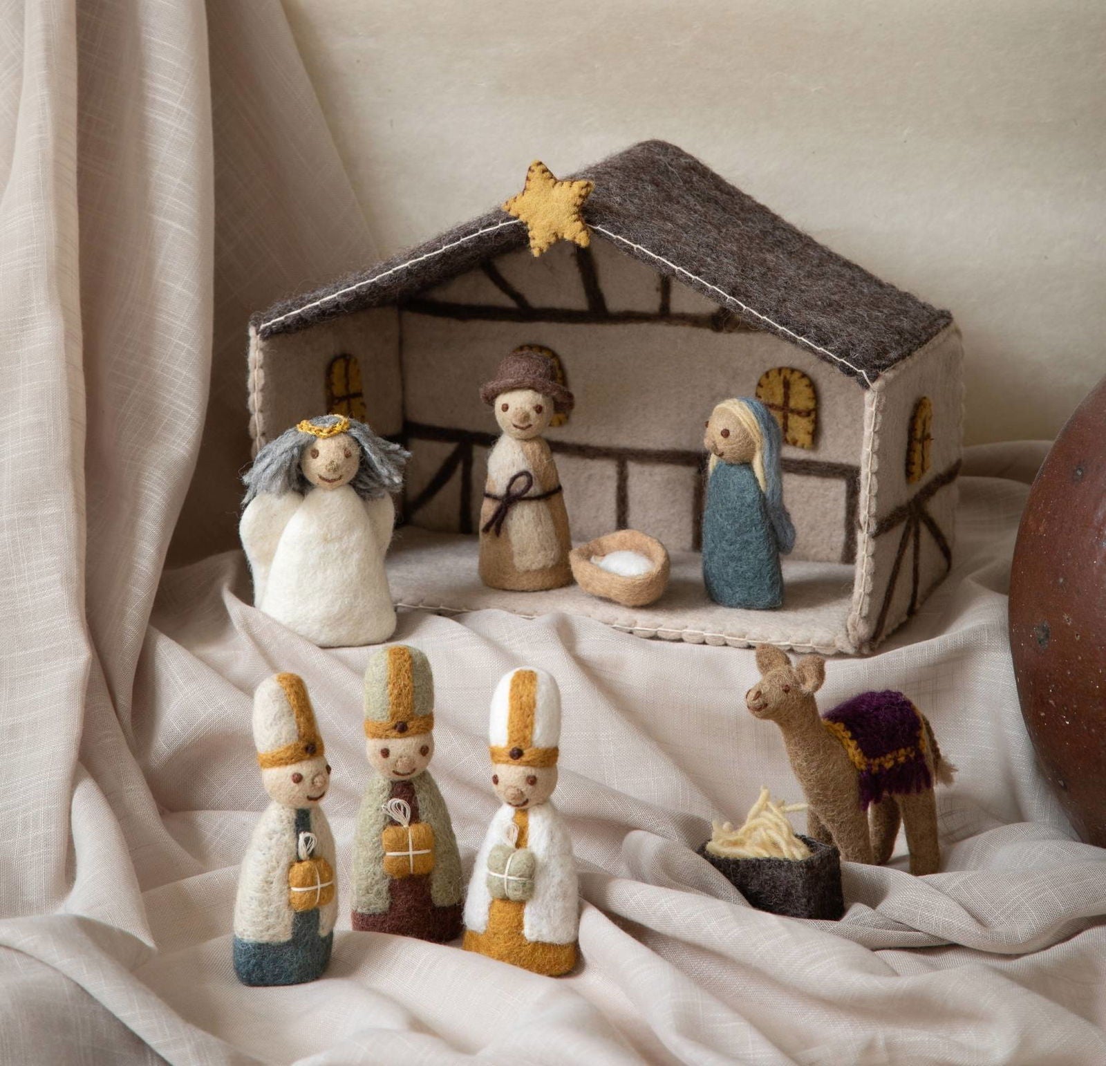 Ein kleines Filzwunder: Diese wunderschöne, handgefertigte Krippe mit offenem Design erweckt die Weihnachtsgeschichte zum Leben – mit warmen Farben, weichen Formen und einer ruhigen Atmosphäre, die Geborgenheit ausstrahlt.