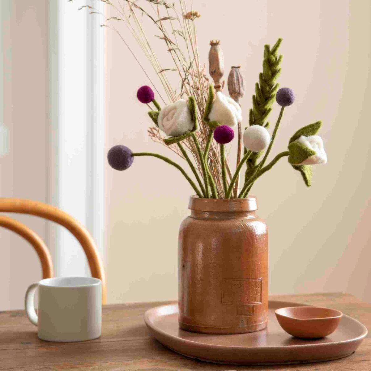 Nachhaltigkeit trifft auf Design bei der Blumendeko von Gry & Sif. Jedes Stück wird in Handarbeit aus natürlicher Schurwolle hergestellt, was nicht nur umweltfreundlich ist, sondern auch für eine lange Lebensdauer sorgt.