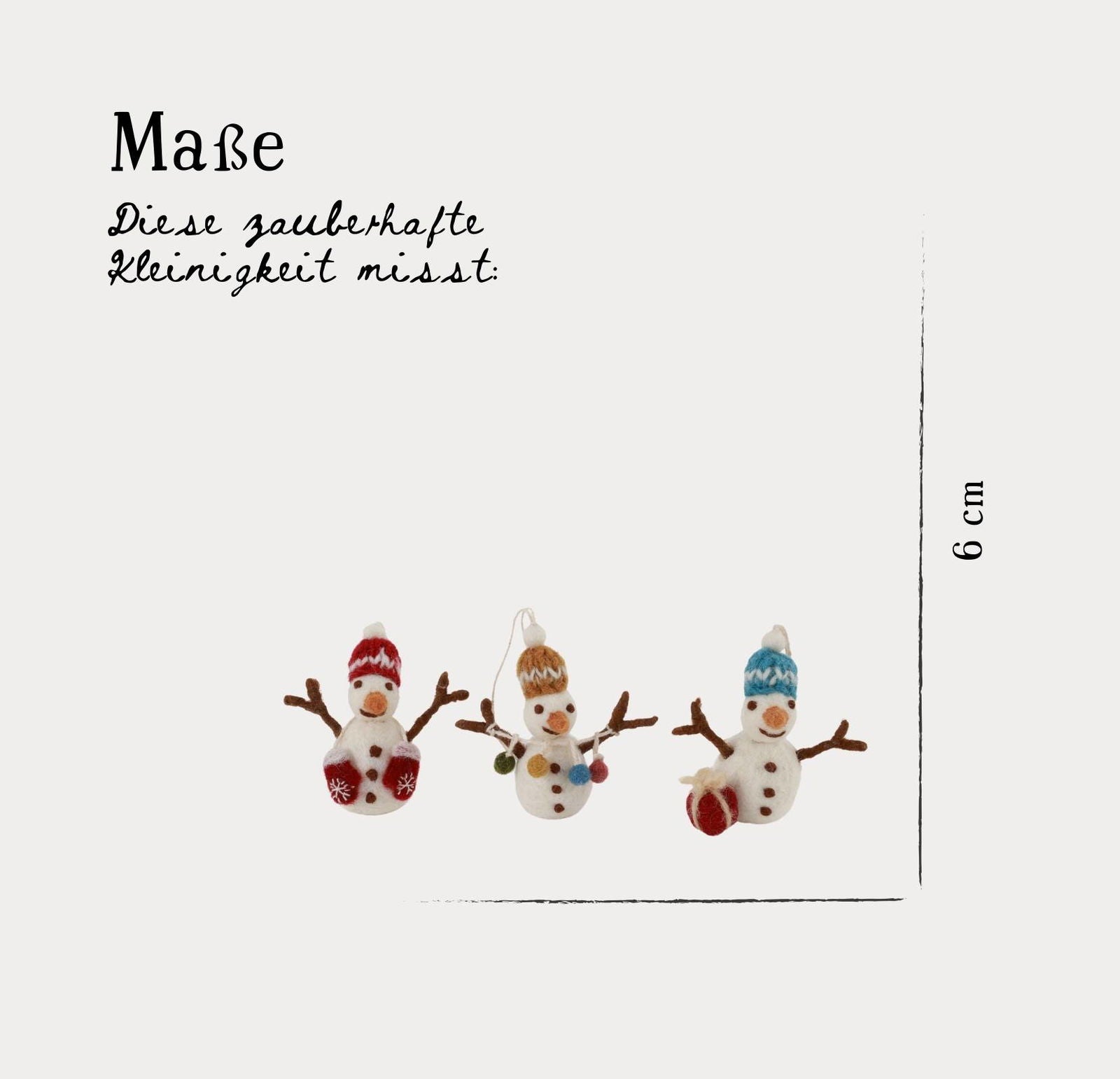 Filzfigur Schneemänner mit Strickmütze 3er Set