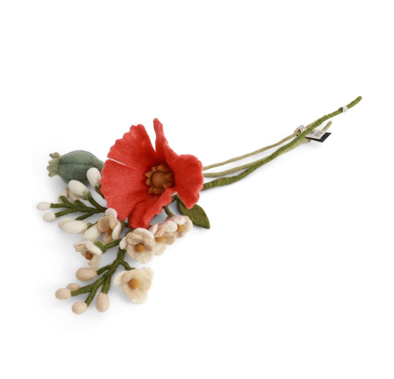 Der elegante Bina-Strauß von Gry & Sif vereint dezente Eleganz mit handgefertigten Filzblumen.