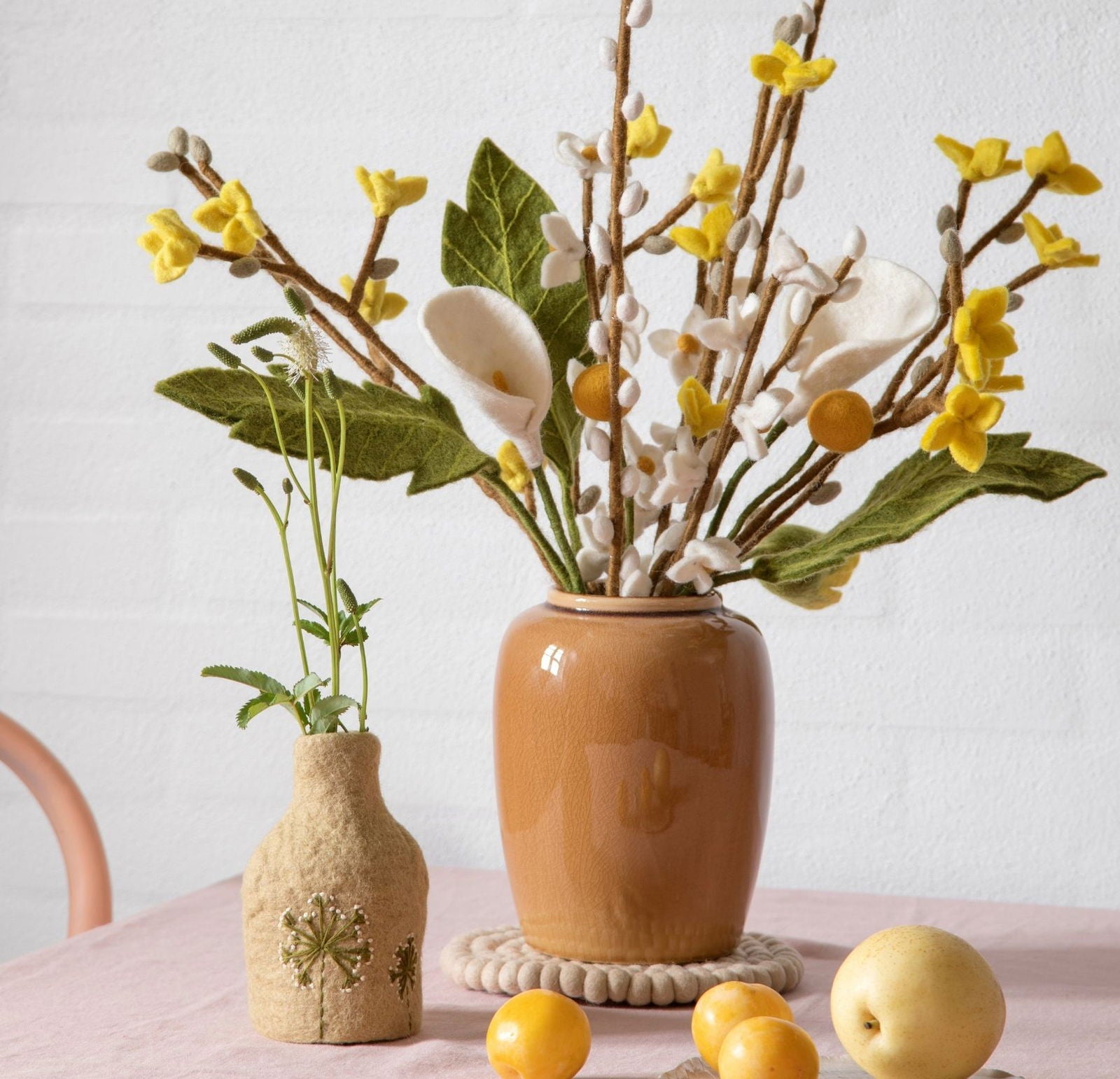 Die Blumensträuße aus Filz von Gry & Sif sind eine wunderschöne und langlebige Alternative zu echten Blumen. Diese handgefertigten Sträuße bestehen aus hochwertiger Schurwolle und bringen Farbe und Freude in jeden Raum. Ideal als Geschenk oder als dauerhafte Dekoration, sind sie perfekt für Allergiker und benötigen weder Wasser noch Licht.