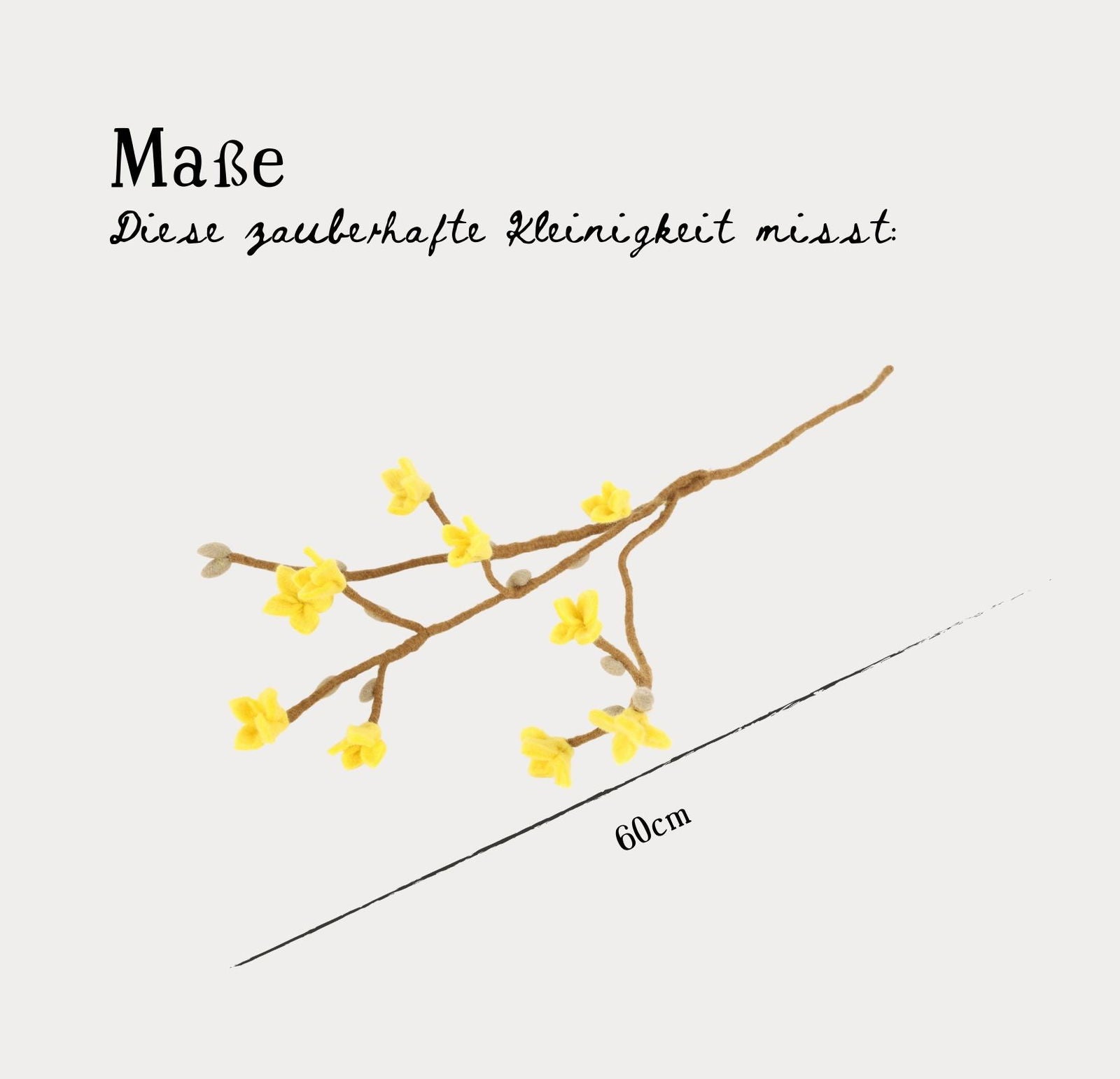 - Design: Forsythien-Zweig mit goldenen Glöckchen