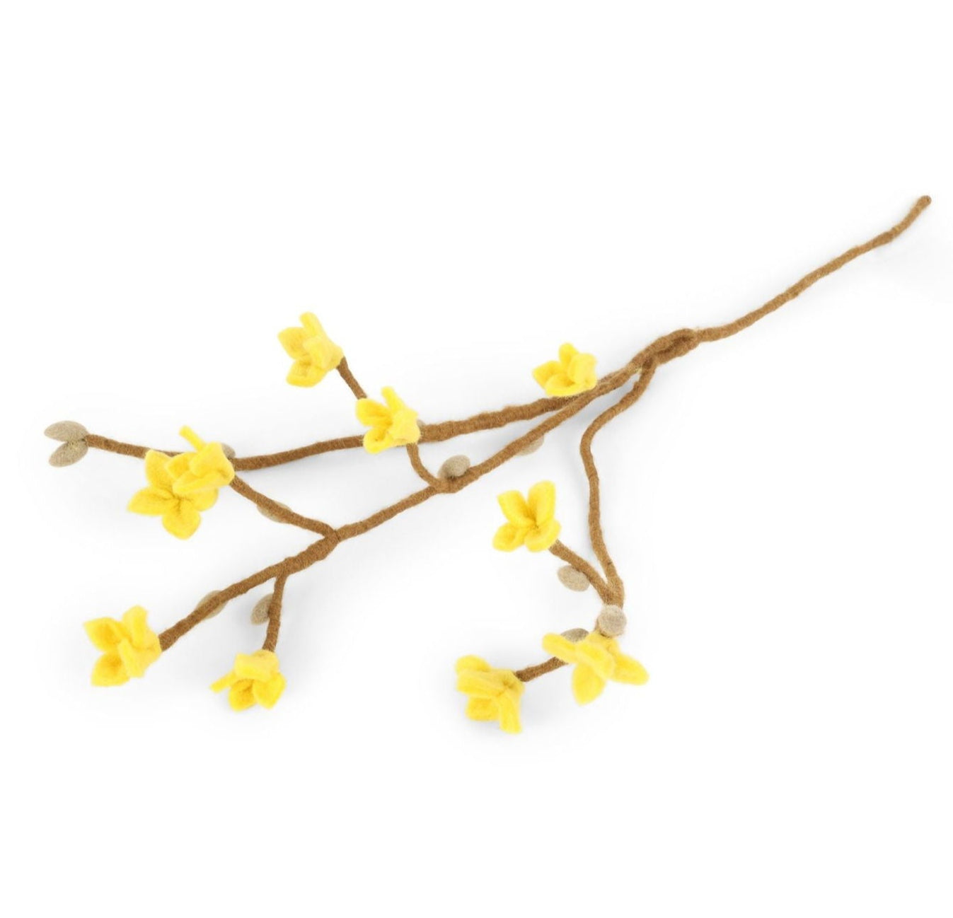 Ein zarter Forsythien-Zweig mit goldenen Glöckchen setzt elegante und festliche Akzente in deiner Dekoration.