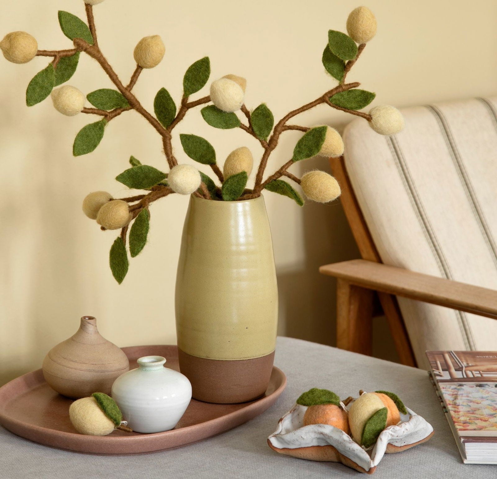 Nachhaltigkeit trifft auf Design bei der Blumendeko von Gry & Sif. Jedes Stück wird in Handarbeit aus natürlicher Schurwolle hergestellt, was nicht nur umweltfreundlich ist, sondern auch für eine lange Lebensdauer sorgt.