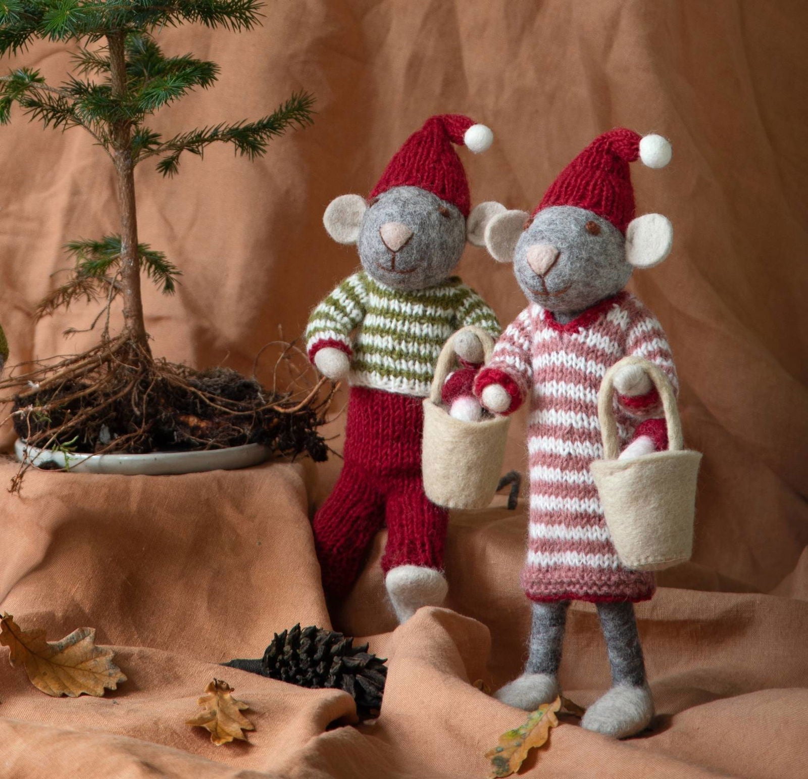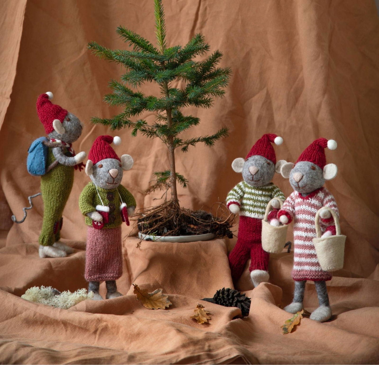 Diese große graue Filzmaus im Kleid bringt ein Stückchen Waldzauber in dein Zuhause. Mit ihrem liebevoll gestalteten Eimer und dem kleinen Pilz darin ist sie mehr als nur eine Dekoration – sie ist ein magischer Begleiter durch die schönste Zeit des Jahres. Ob auf dem gedeckten Weihnachtstisch, als festliches Detail im Adventskranz oder als ganz besonderes Ornament am Weihnachtsbaum – diese Maus sorgt garantiert für ein Lächeln und eine Extraportion Gemütlichkeit.