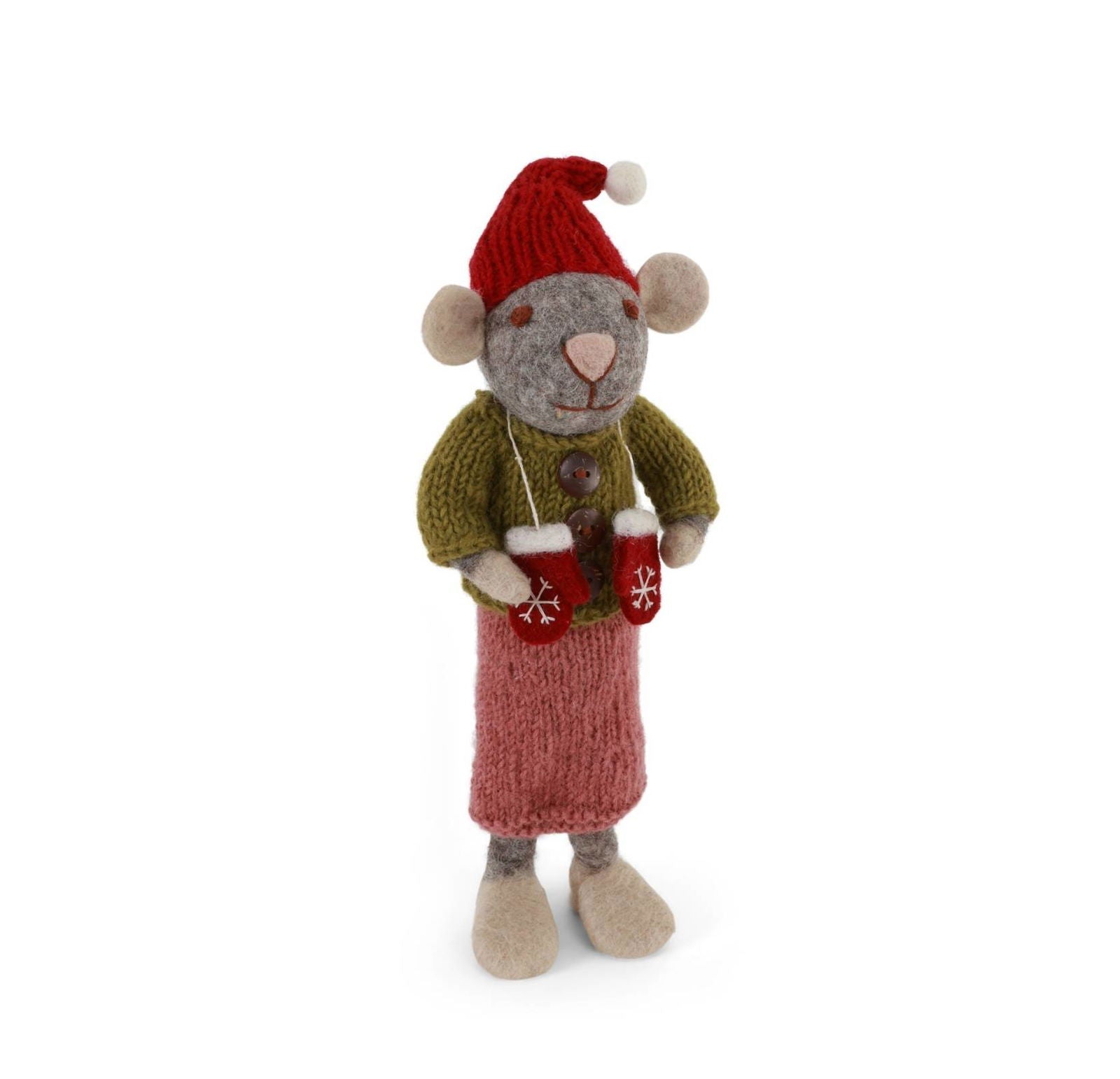 Filzfigur Maus grau mit Fäustlingen