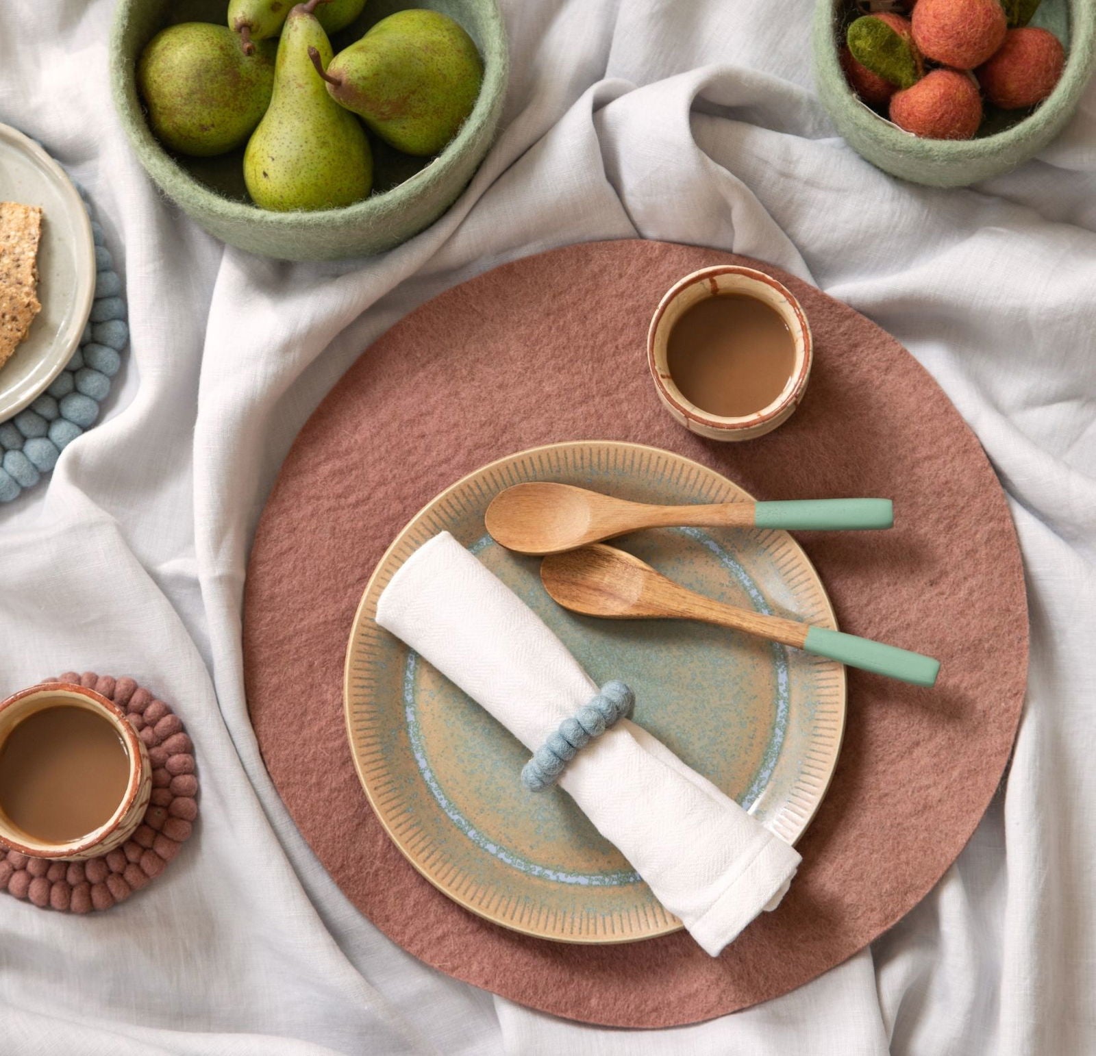 Warm und einladend – diese ockerfarbenen Filz-Tischsets bringen einen goldenen Schimmer auf deinen Tisch. Handgefertigt in Nepal, vereinen sie Funktionalität und Schönheit