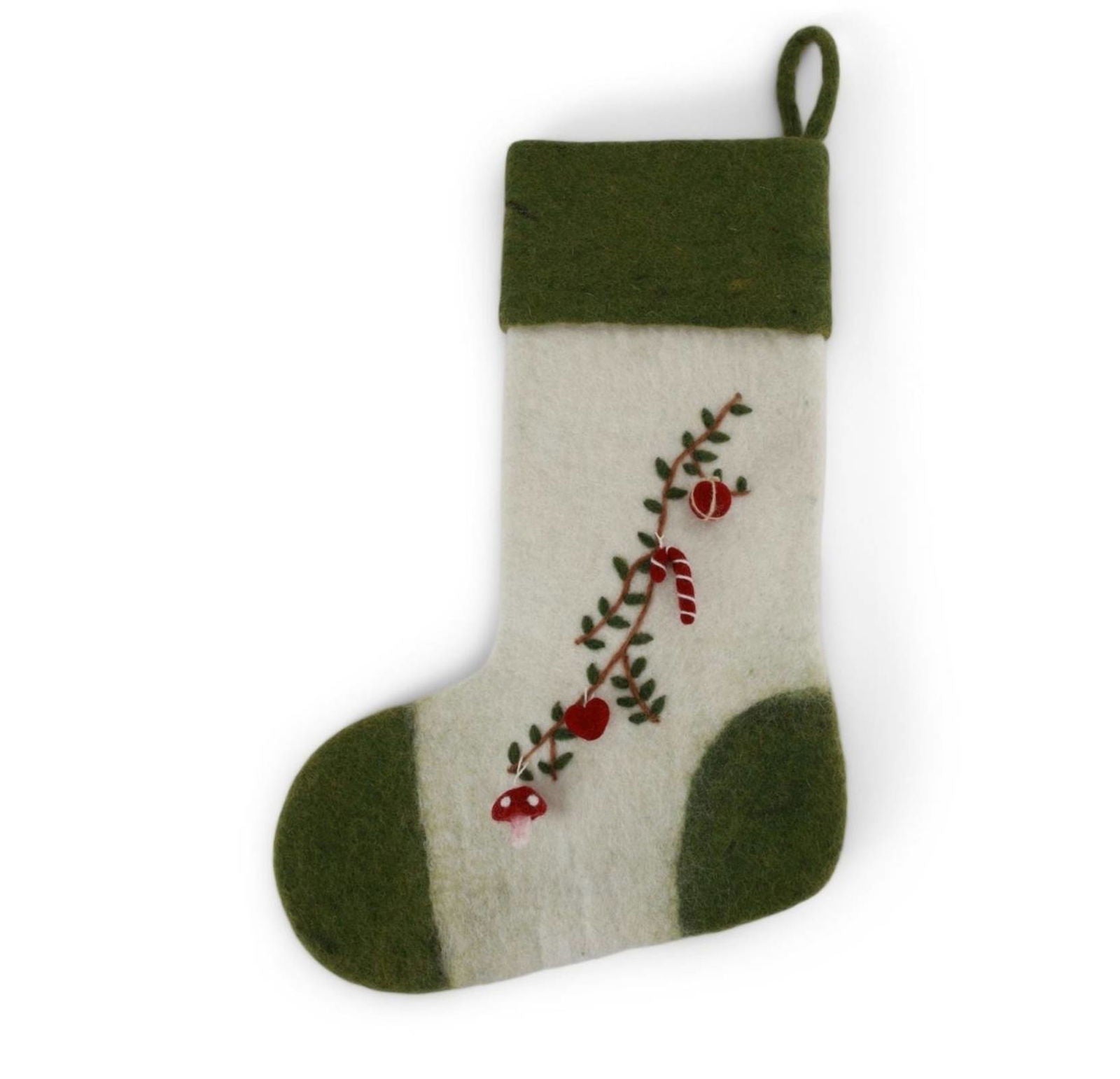 Gry & Sif Weihnachtsstrumpf Weiß & Dunkelgrün mit Girlande (50 cm)
